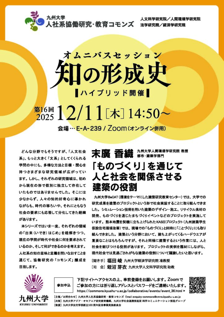 【12/11(木)開催】人社系協働研究・教育コモンズ オムニバスセッション 知の形成史 第16回